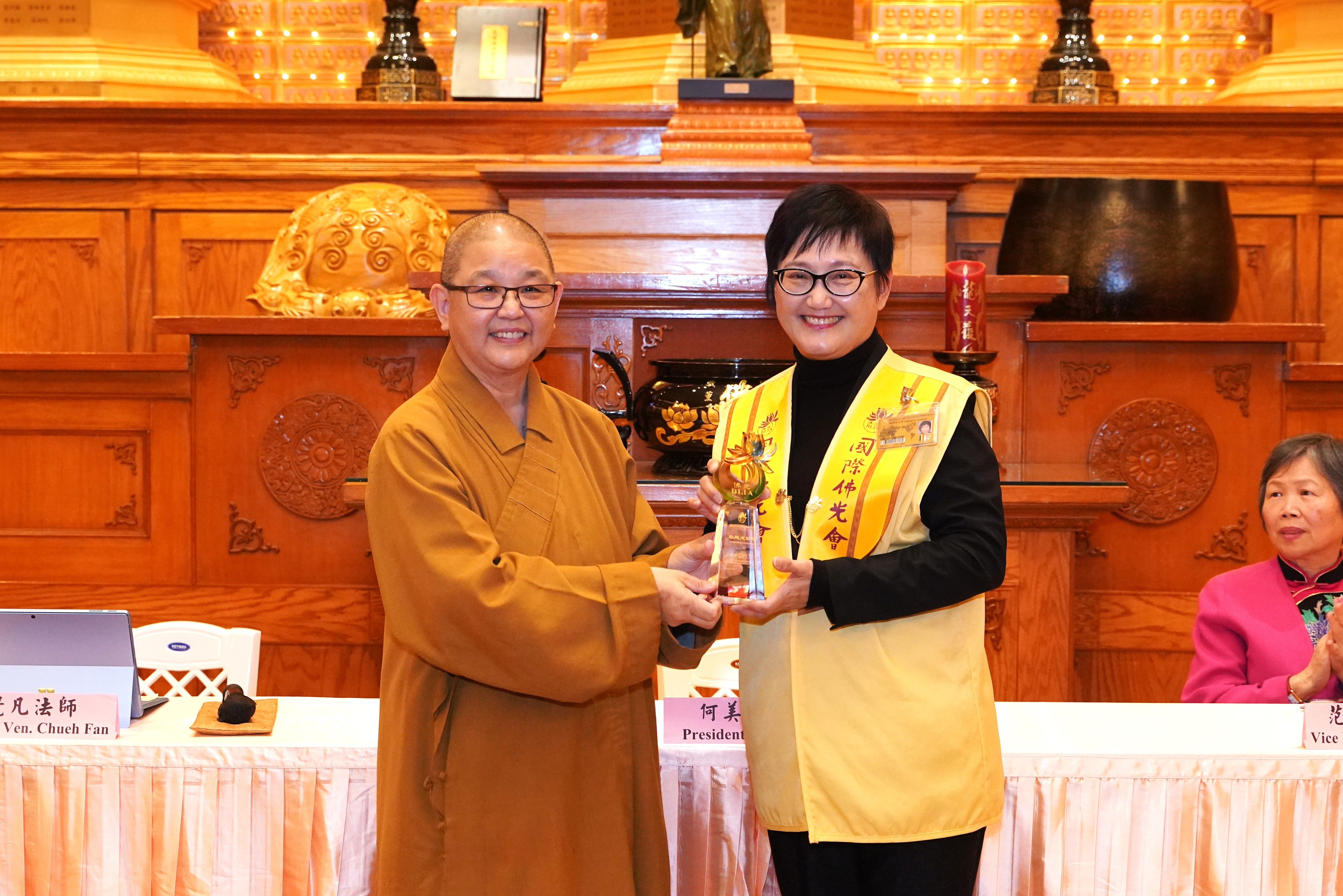 President Mabel Lam reflected on the chapter’s efforts over the past year, noting that challenges such as the pandemic inspired innovation, including the expansion of online Dharma programs and creative service initiatives. She expressed gratitude to the monastic community for its guidance and to all members for their dedication and teamwork, and conveyed confidence in the incoming leadership.