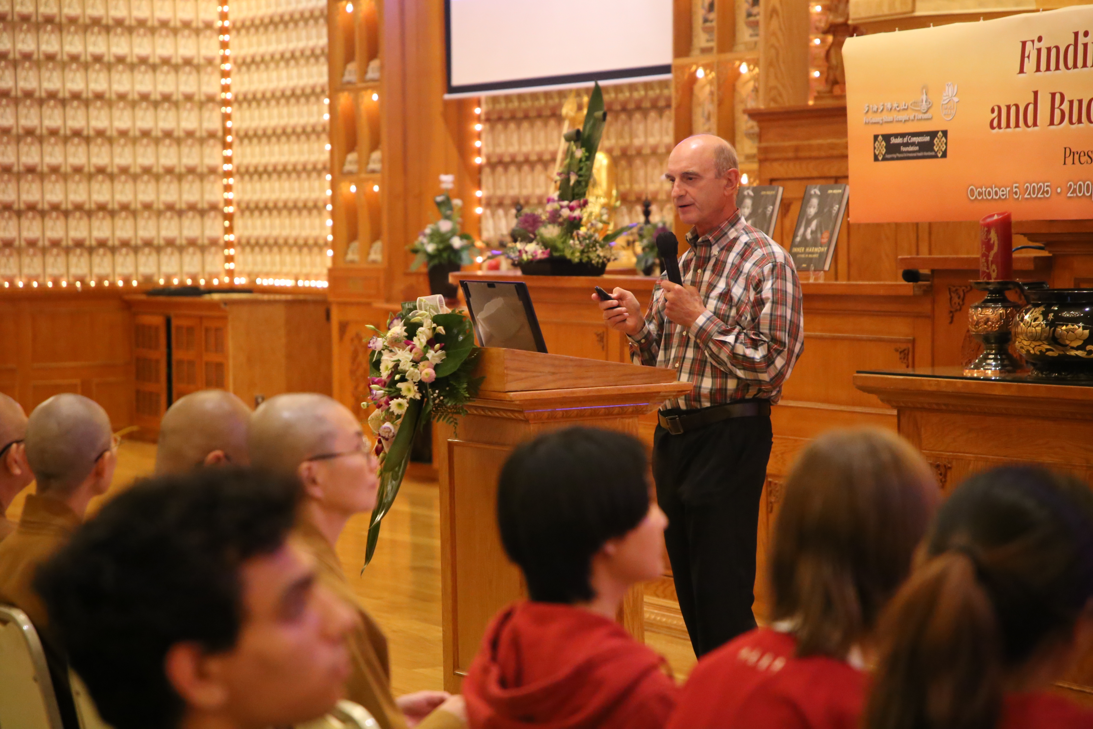 On October 5, Fo Guang Shan Temple of Toronto hosted a public lecture entitled “Finding Joy: Scientific and Buddhist Perspectives,” delivered by physician,humanitarian, and author Dr. Jon Kolkin. More than 100 participants attended the event, which explored how scientific understanding and Buddhist wisdom intersect to foster inner peace.