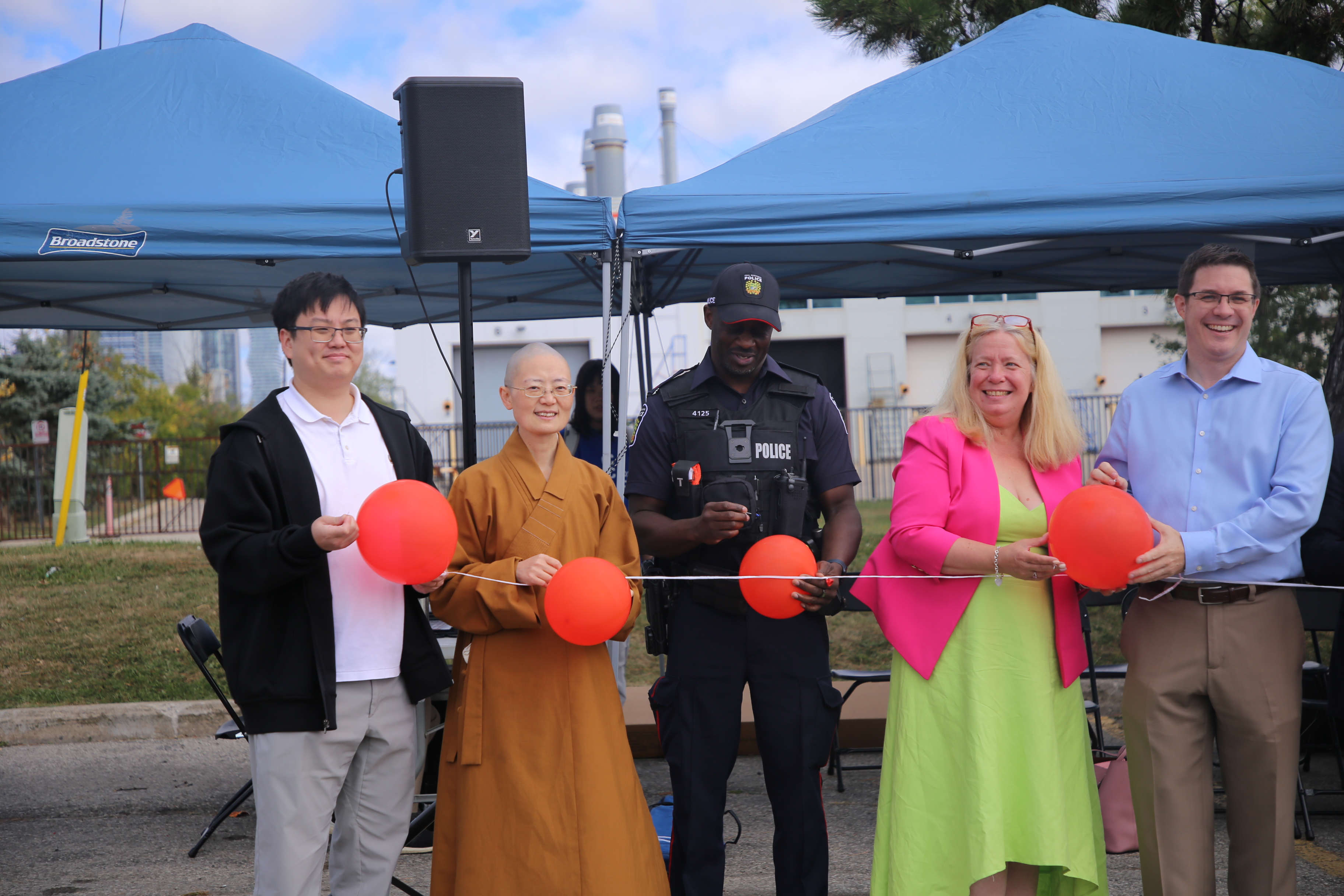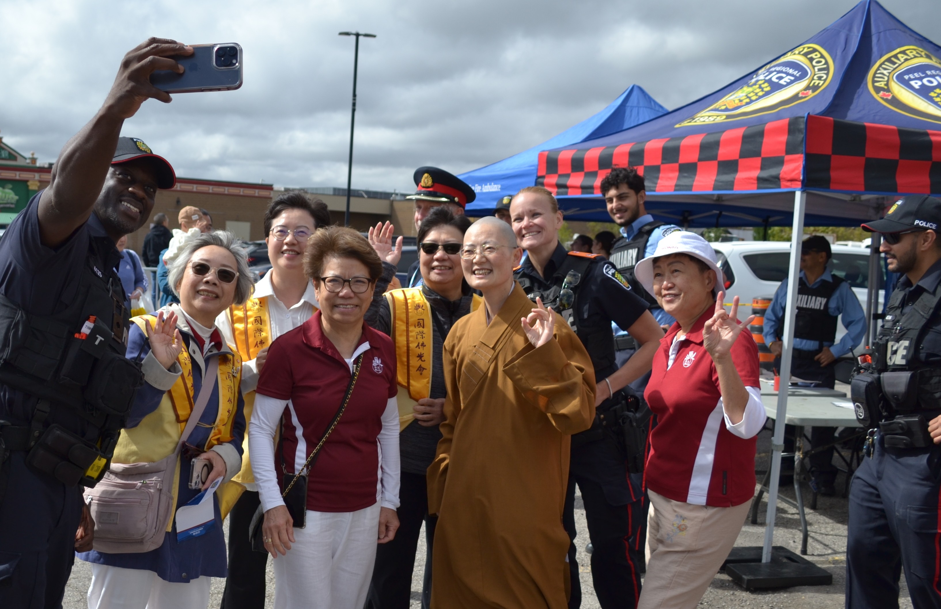 The event attracted participants from all sectors, including government officials, senior police and fire executives, and Ontariomulti cultural representatives. Messages of congratulations emphasized unity and the value of volunteer contributions. Venerable Zhi Guan joined a balloon-popping inauguration ceremony, then visited the police booth to exchange ideas and express gratitude for their efforts in maintaining public safety.