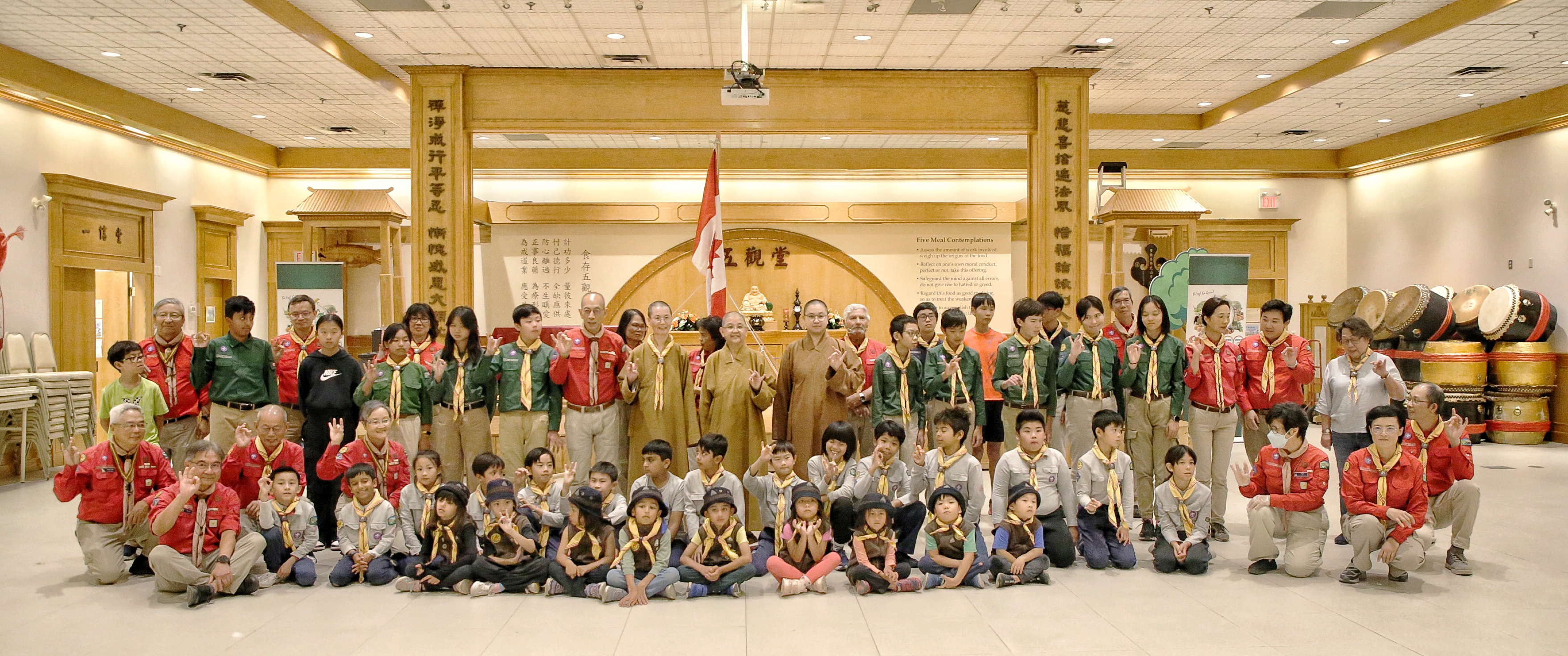 The ceremony was graced by Venerable Chueh Fan, Abbess of Fo Guang Shan Temple of Toronto; Venerable Ru An, Scout Group Monastic Advisor; Venerable Zhi Shen; Commissioner Ken Choi; group leaders; and more than 60 members and parents from all sections.