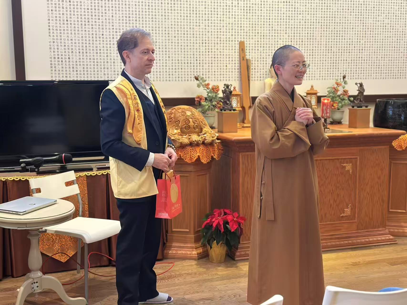 The BLC Waterloo Monastic Advisor, Venerable Zhi Guan, presented Dr. Holloway with a commemorative gift on behalf of the temple, thanking him for a thoughtful presentation that bridged scientific inquiry and Buddhist practice, and encouraging participants to integrate the Dharma into daily life.