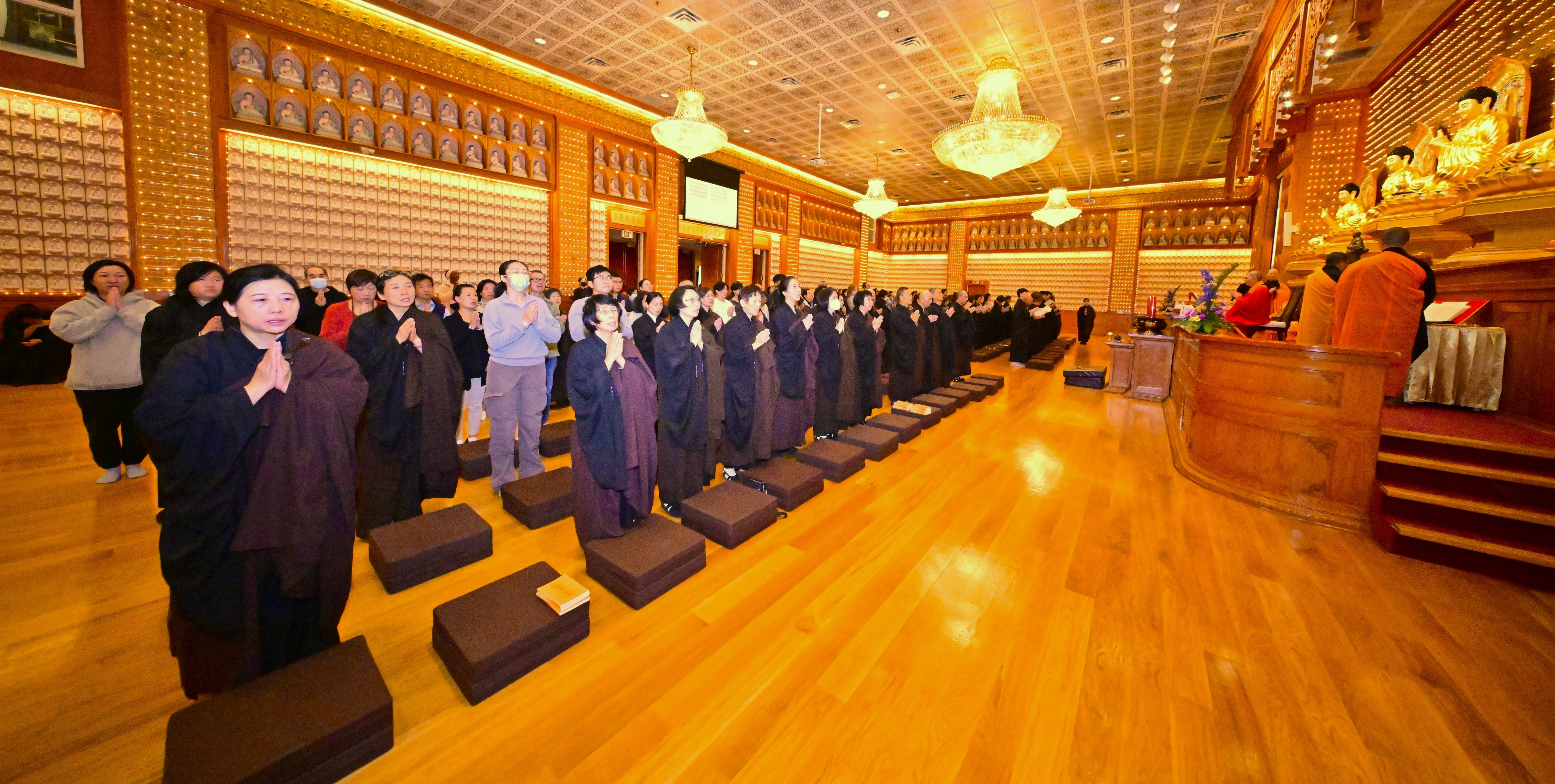 On October 12, Fo Guang Shan Temple of Toronto held a solemn and auspicious Triple Gem Refuge Ceremony, presided over by Venerable Chueh Fan, Abbess of Fo Guang Shan Temple of Toronto. Thirty-six participants joyfully became disciples of the Buddha, taking refuge under the blessings and protection of the Triple Gem. Among them were couples and siblings who made the vow together, while nearly 150 disciples, Buddha’s Light members, and guests attended to witness this sacred milestone.