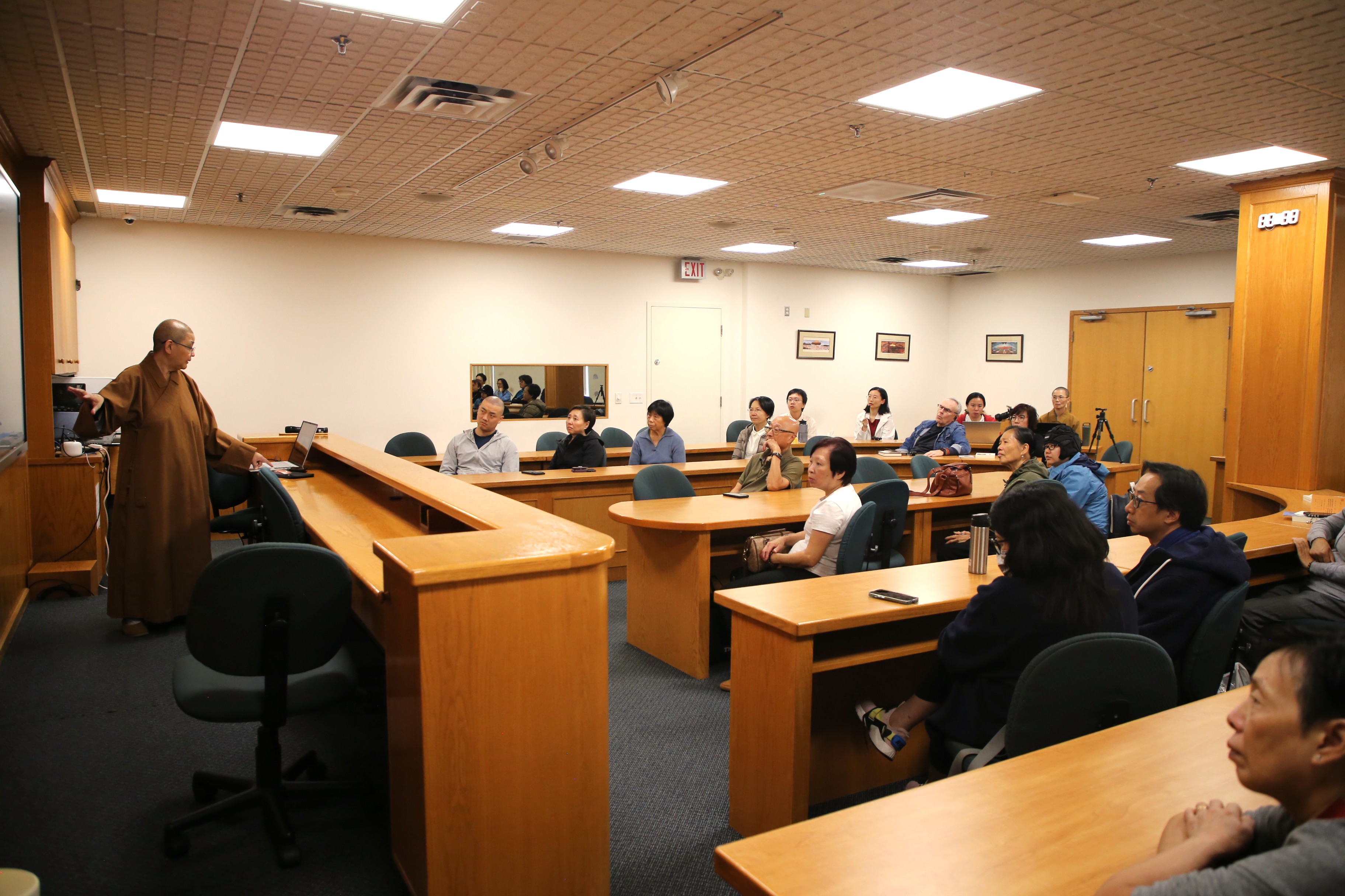 In her Dharma talk, Venerable Chueh Fan explained that taking refuge in the Buddha is like building a power company in one’s heart, bringing light and clarity to oneself and others. Taking refuge in the Dharma is like creating a natural water plant in the mind, where the water of wisdom purifies karmic obstacles and nourishes faith. Taking refuge in the Sangha is like owning fertile land on which towers of learning and fields of virtue can flourish. She reminded participants that taking refuge marks a turning point that removes one’s name from the paths of suffering and affirms faith in one’s inherent goodness.
