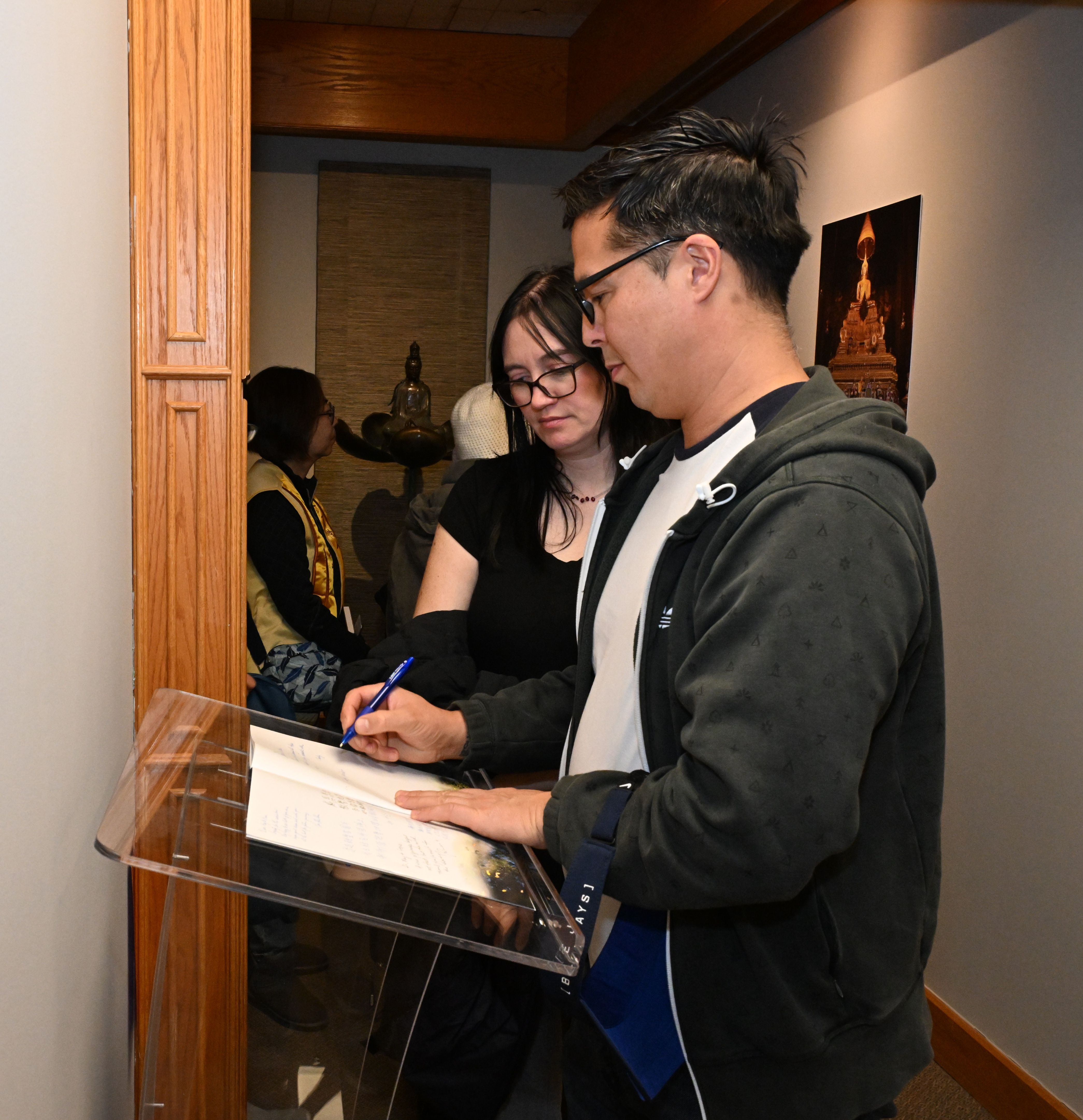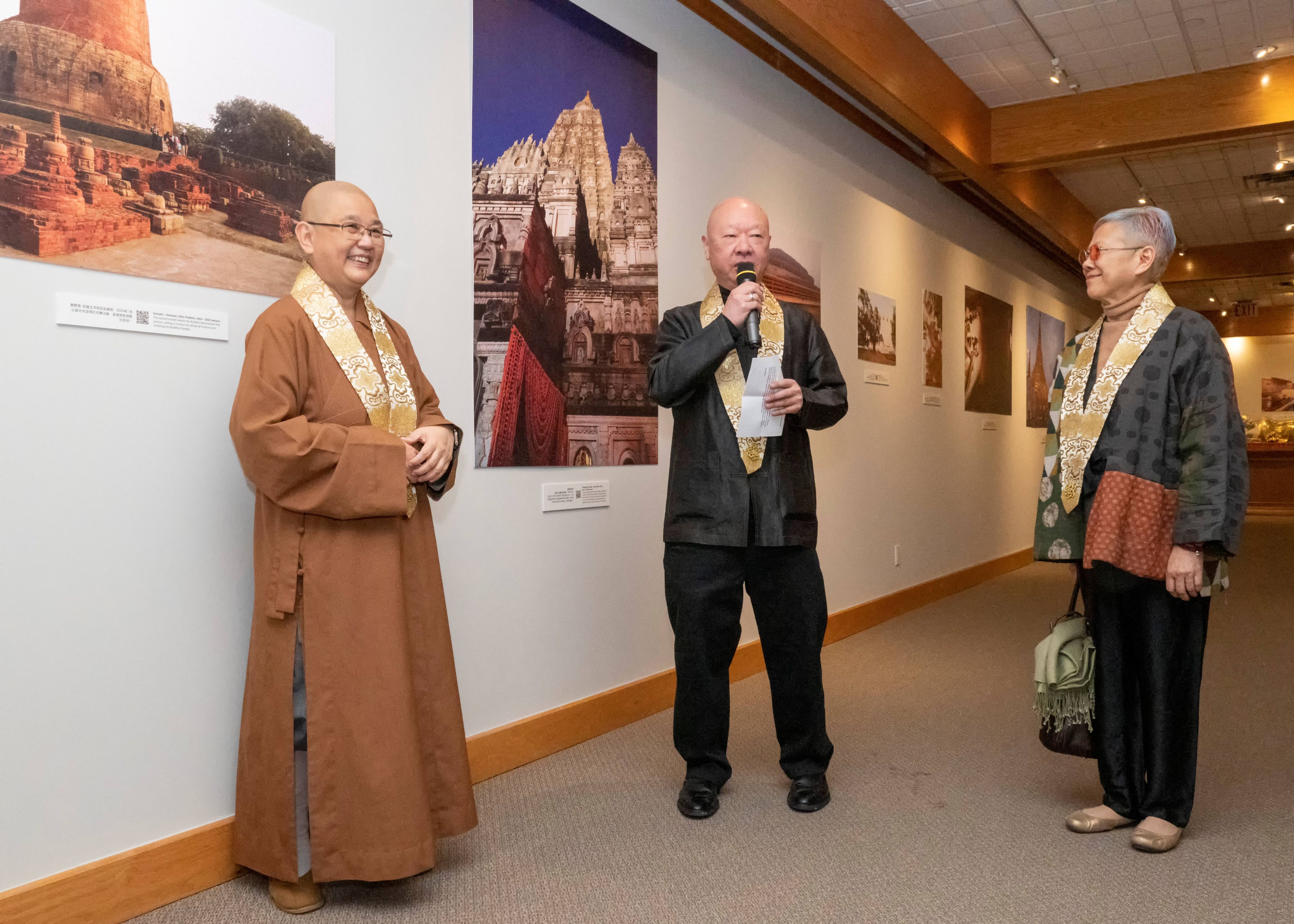 Fo Guang Shan Temple of Toronto inaugurated the Two Buddhist Pilgrims’ Journey Photography Exhibition on November 15. Abbess Venerable Chueh Fan led the ribbon-cutting ceremony with curators May Tossan and Steve Tossan, joined by approximately 40 community members and friends.