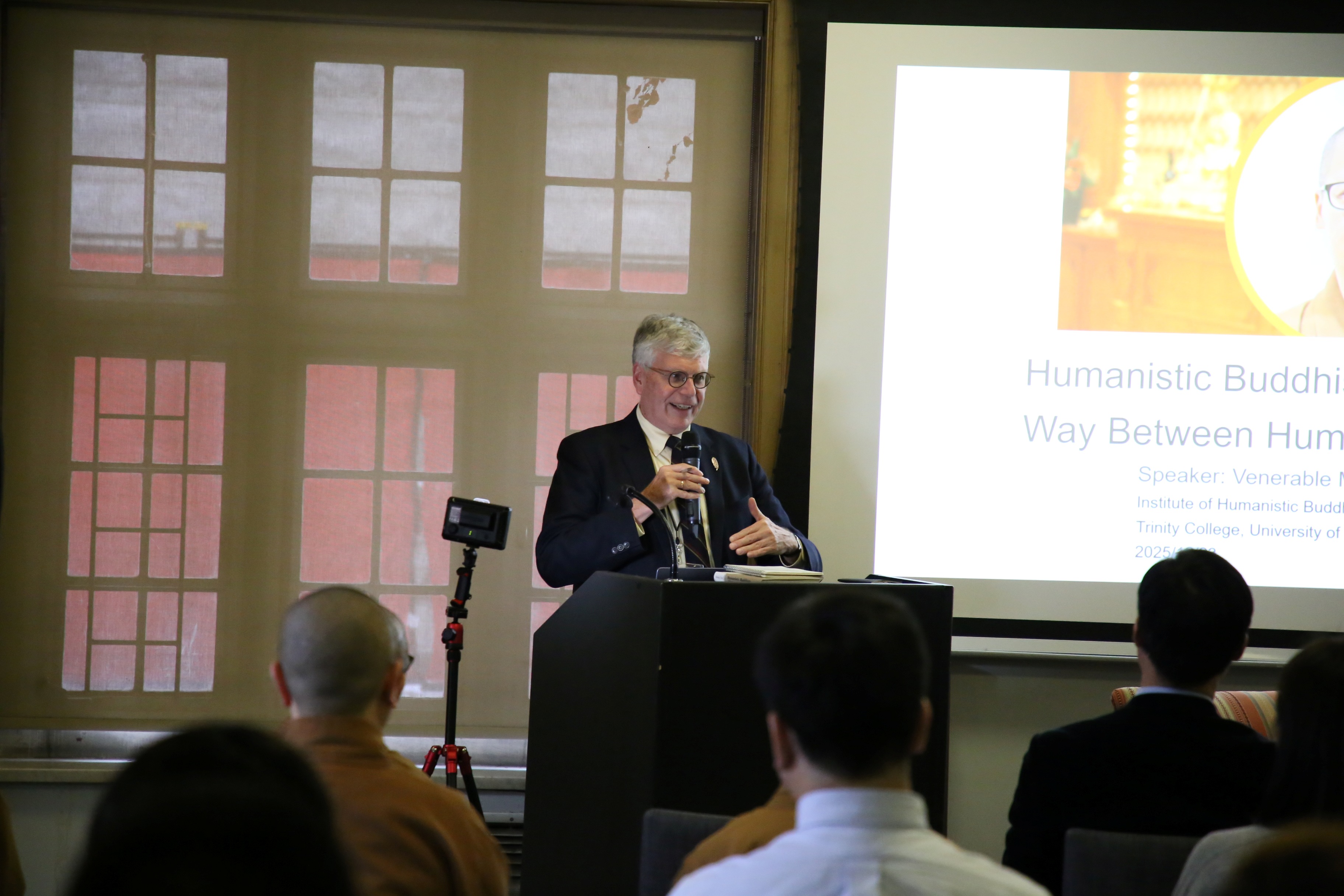Opening the event, Professor Nicholas Terpstra, Provost and Vice-Chancellor of Trinity College, welcomed Venerable Miao Guang and expressedappreciation to Venerable Chueh Fan, Abbess of Fo Guang Shan Temple of Toronto, and Dr. Jizhang Yi, Director of the Institute, for their support in developing the Institute’s academic mission. He also introduced upcoming initiatives, including curriculum development,research collaborations, and the Institute’s inaugural international conference planned for May 2026.